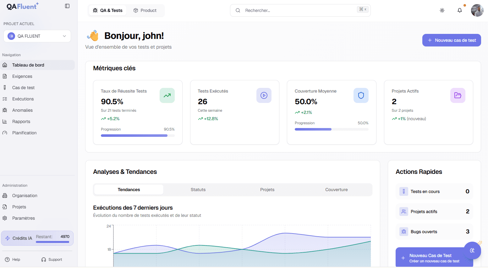 QA Fluent suggère automatiquement, conçoit et rédige avec l'IA.